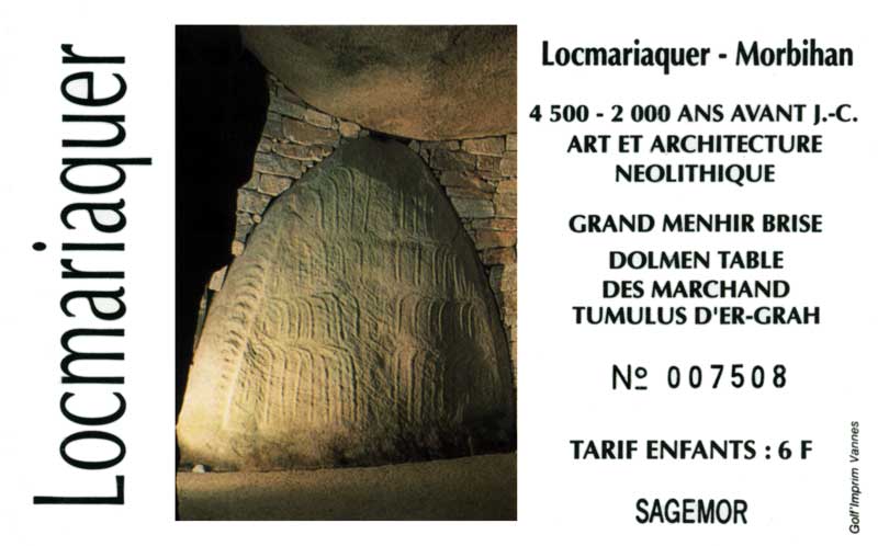 Nous parcourons ensuite les 500 mètres qui nous séparent du tumulus St-Michel. Mais il y a foule attendant pour pénétrer dans le couloir souterrain menant au dolmen, au cœur du haut et vaste tumulus (120 m de long par 12 de haut). Nous renonçons donc à cette visite et prenons le chemin des fameux alignements. La circulation est encore très dense jusqu'aux pierres de Kerdhus dispersées dans un grand champ |