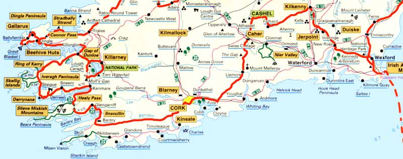 Il nous faut près d’une heure pour trouver une place de stationnement sur un terrain vague en périphérie du village; en revanche en 10 minutes l’aimable propriétaire d’une agence de voyage rejoint la compagnie Irish Ferries et change notre réservation : nous quitterons Rosslare dimanche le 4 août à 16:00 au lieu de samedi le 10 août. |