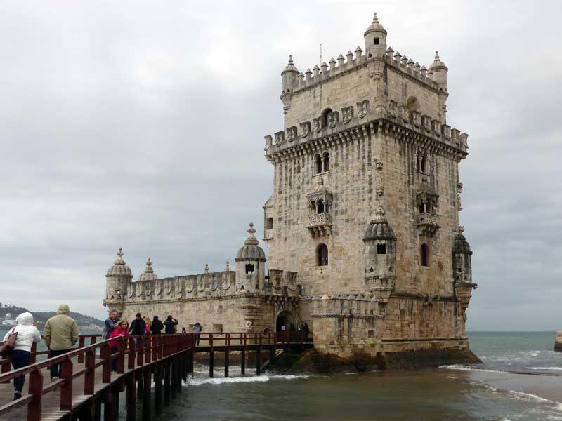 | Nous décidons de commencer en douceur la découverte de Lisbonne en nous rendant à Belém pour en visiter la fameuse tour, autrefois gardienne de l’estuaire du Tage. Elle s'élève tel un vaisseau de ligne sur-armé placé opportunément sur un ilot ancré autrefois au milieu des eaux. | ![]() Av. da Torre de Belém |