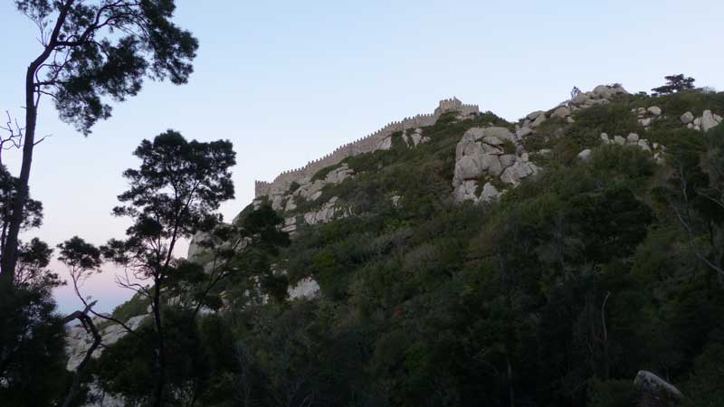 visite… Nous préférons donc la remettre à demain 10:00 et allons nous installer dans le vaste parking désert et tranquille sous les arbres. Il fait encore assez jour pour pour une petite balade crépusculaire du côté du Castelo dos Mouro. |