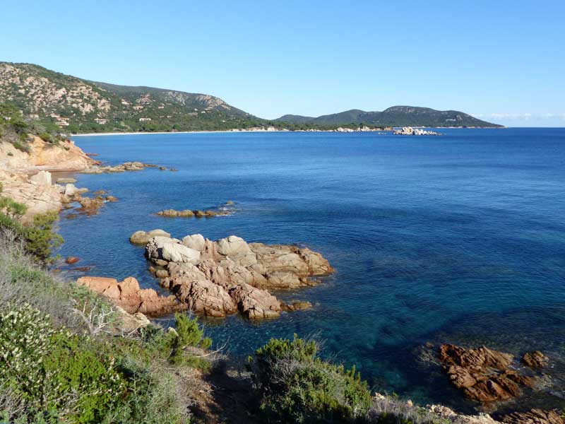 côte au sud. Je marche un peu sur le sable, me hasarde sur les rochers pour gagner la plage de Sperone. puis renonce à ce qui tourne à l'expédition faute de chaussures adaptées (j'ai gardé mes sandales…). |