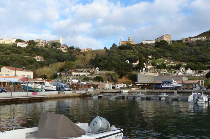 Je n'irai pas loin car, avisant un panneau dirigeant vers la plage de Bussaglia au bout de la toute petite D724, j'abandonne la D81 côtière pour descendre jusqu'au bord de l'eau et installer mon bivouac devant les petits galets qui bordent la plage, entre deux restaurants fermés pour l'hiver. |