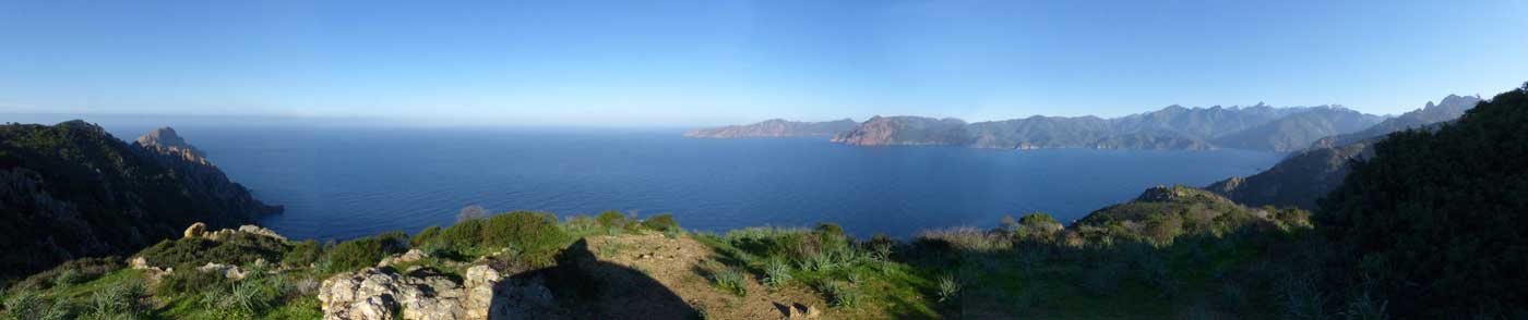 ![]() Vue vers le golfe de Girolata depuis le Col de Palmarella |