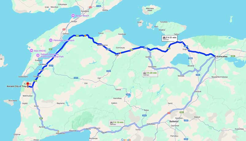 fait frais. Je poursuivrai ainsi ma route ininterrompue jusqu’à Çanakkale au niveau du détroit des Dardanelles, théâtre des affrontements furieux de la Première guerre mondiale qui vit monter l’étoile de celui qui deviendrait Kemal Ataturk, et fit autour de 100 000 morts du côté des forces alliées (Anglais et leur Commonwealth, Français, Russes etc.). |